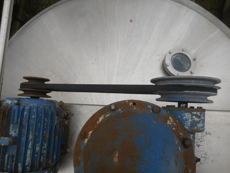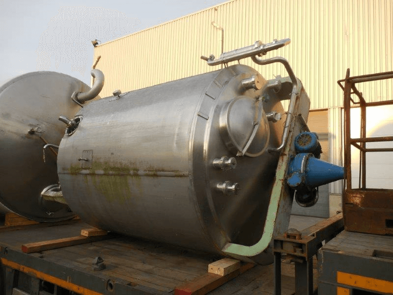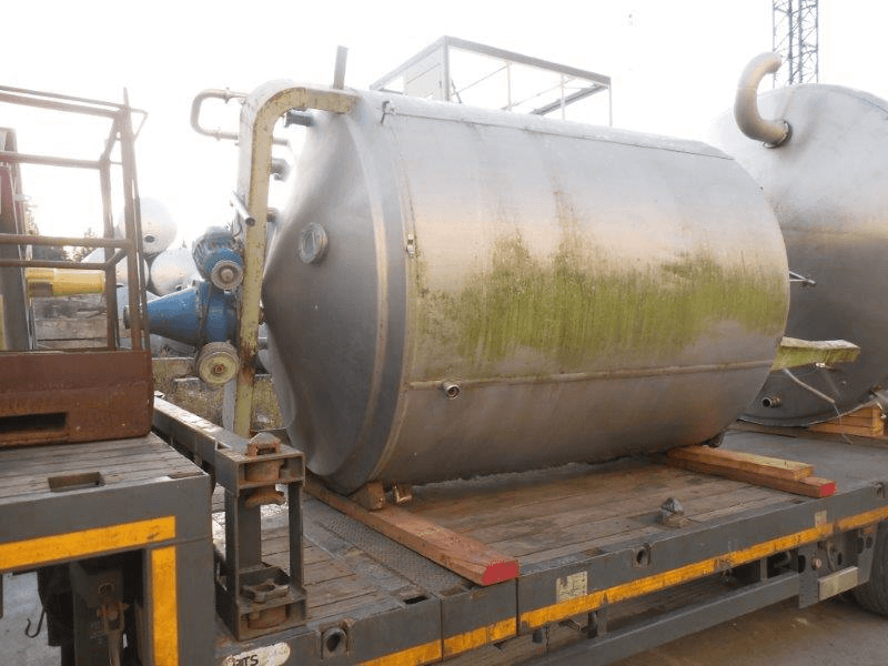 Omschrijving (NL) | één tank heeft stalen roerwerkbrug en stalen poten. Verwarmingsmantel van één tank (met inox roerwerkbrug) ONBRUIKBAAR (lekken). Verwarmingsmantel andere tank (met stalen roerwerkbrug) dient enkel om water te laten circuleren ZONDER DRUK. |