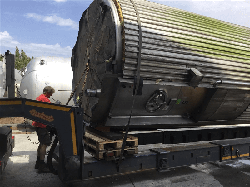 | Omschrijving (NL) | Tank heeft een vlakke bodem met afschot, de betonsokkel moet licht hellend zijn, afschot = 70 mm (2,5%) • Aansluitingen voor roerwerk en sproeibol zijn voorzien • Koelmantels ook in rvs • Dikte cilinder: o 1.500 x 4mm + koelprofiel inox 304 o 1.500 x 3mm + koelprofiel inox 304 o 1.500 x 2,5mm o 1.500 x 2mm o 1.500 x 2mm o 1.500 x 2mm |