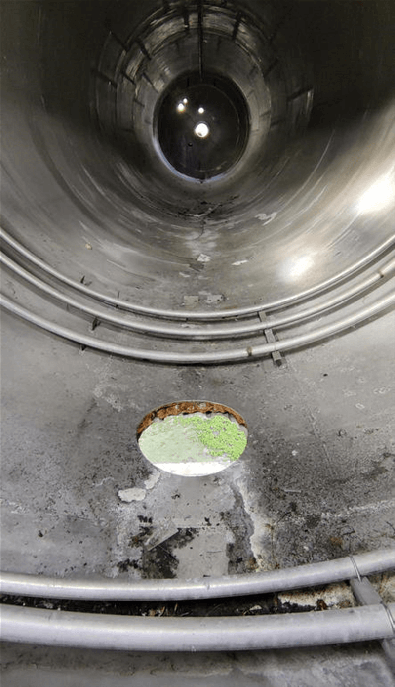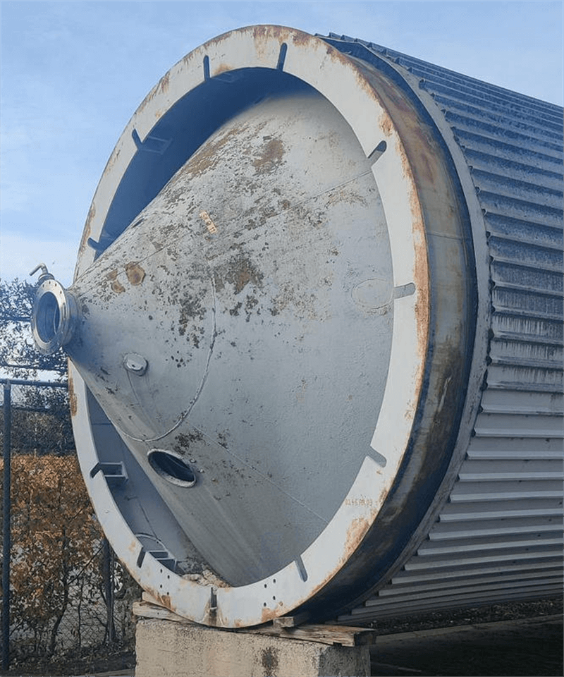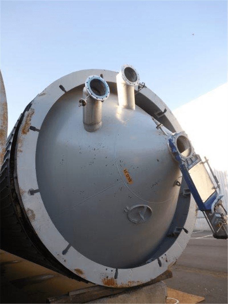 | Omschrijving (NL) | vorig product = zout, foodgrade --- diktes 1° ring 5,7 / 2°ring 5,3 / 3° ring 4,2 / 4° ring 4,1 / 5° , 6° en 7° ring 4,2 --- geen connecties aanwezig aan de interne verwarmingsbuis --- opening Ø600mm onderaan mantel --- centrale opening op dak Ø530mm zonder afdekplaat |