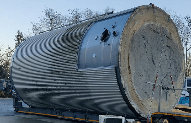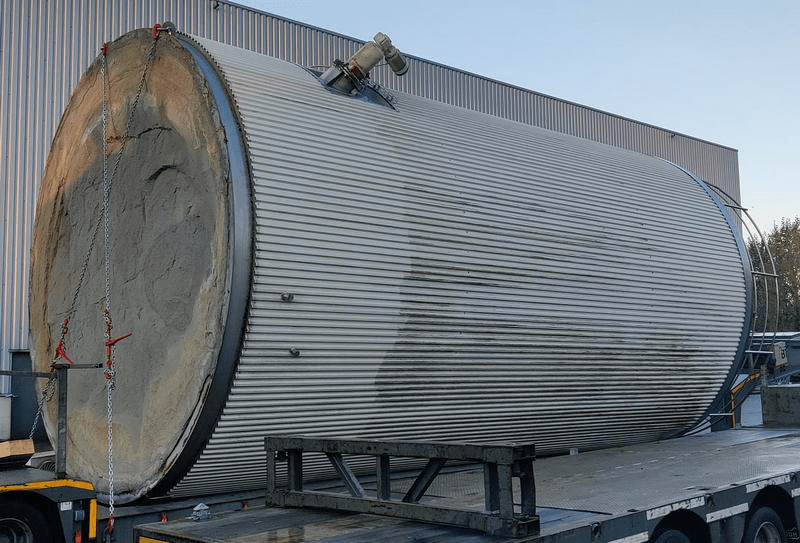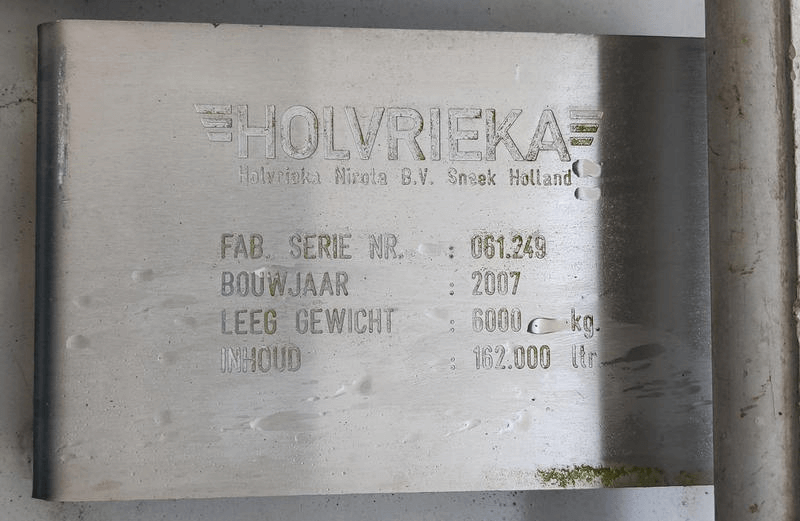| Omschrijving (NL) | 15.3m³ schuimbeton onder schuine bodem (=9200kg) + 6000kg tankgewicht --- ontwerpdruk -2.5 / +7.5 mbarg --- werkdruk ATM --- ontwerptemp -5°C/+90°C --- bijhorende 1-delige kooiladder |