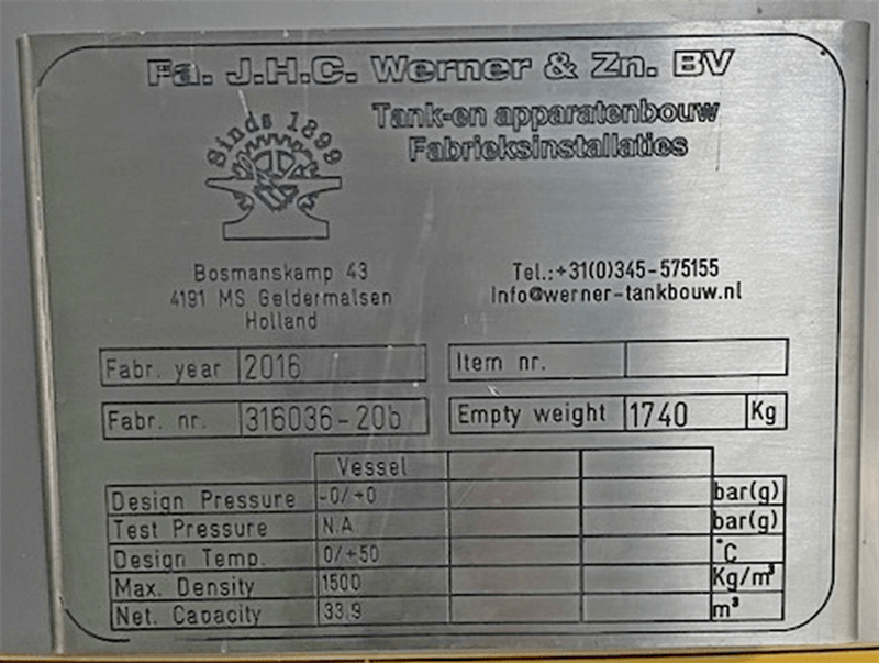 | Omschrijving (NL) | Ontwerpdruk -0/+0 bar(g) --- Ontwerptemp 0°C/+50°C |