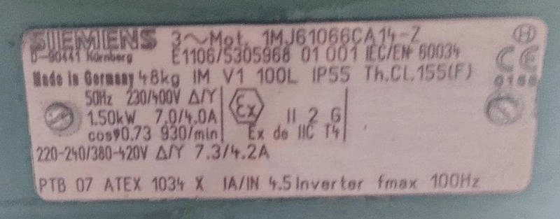 | Roerwerk 1: Vermogen (kw) | 1,5 |