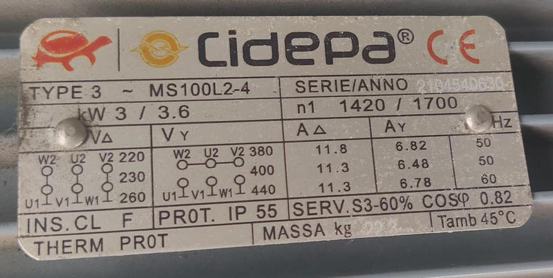 | Roerwerk 1: Vermogen (kw) | 3,6 |