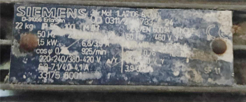 | Roerwerk 1: Toerental (tr/min) | 925 |