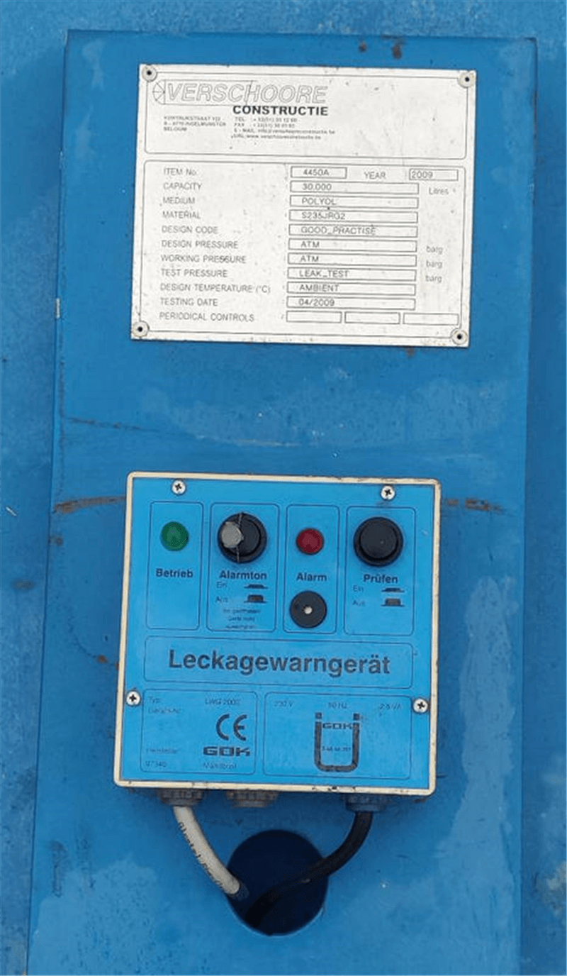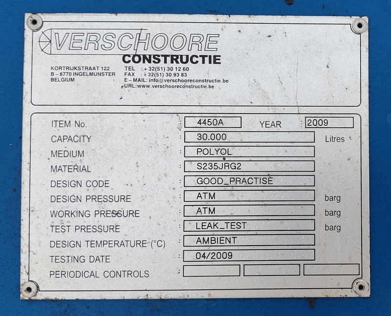 | Omschrijving (NL) | ontwerpdruk ATM --- werkdruk ATM --- ontwerptemp AMB --- Polyol residu aan wanden |