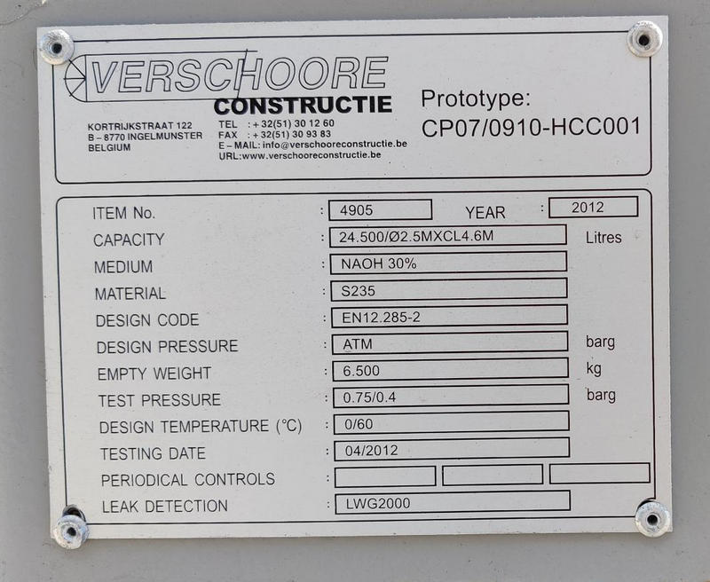Omschrijving (NL) | werkdruk ATM --- testdruk 0.75/0.4 barg --- ontwerptemp 0°C-60°C --- incl. schakelkast --- geen lekdetectiesysteem beschikbaar |