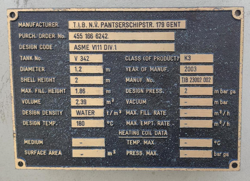 | Omschrijving (NL) | Ontwerptemp 180°C --- Ontwerpdruk 2 bar --- Roerwerk ontbreekt |