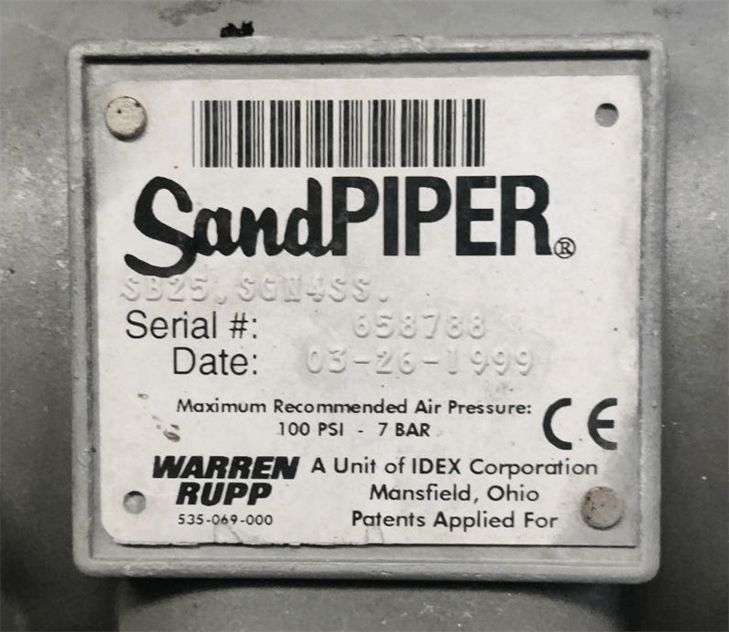 | Omschrijving (NL) | Lucht aangedreven membraanpomp Sandpiper SB25 --- max. debiet 159 LPM --- IN/OUT 1" --- Neopreen membraan met PTFE overlay --- Stainless Steel natte kamer --- Aluminium luchtkamer |