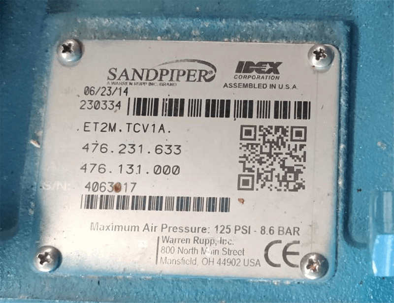 | Omschrijving (NL) | Lucht aangedreven Sandpiper membraanpomp ET2-M met dubbel membraan en lekdetectie --- max. debiet 511 LPM --- IN/OUT 2" --- Viton membraan / PTFE kogels |